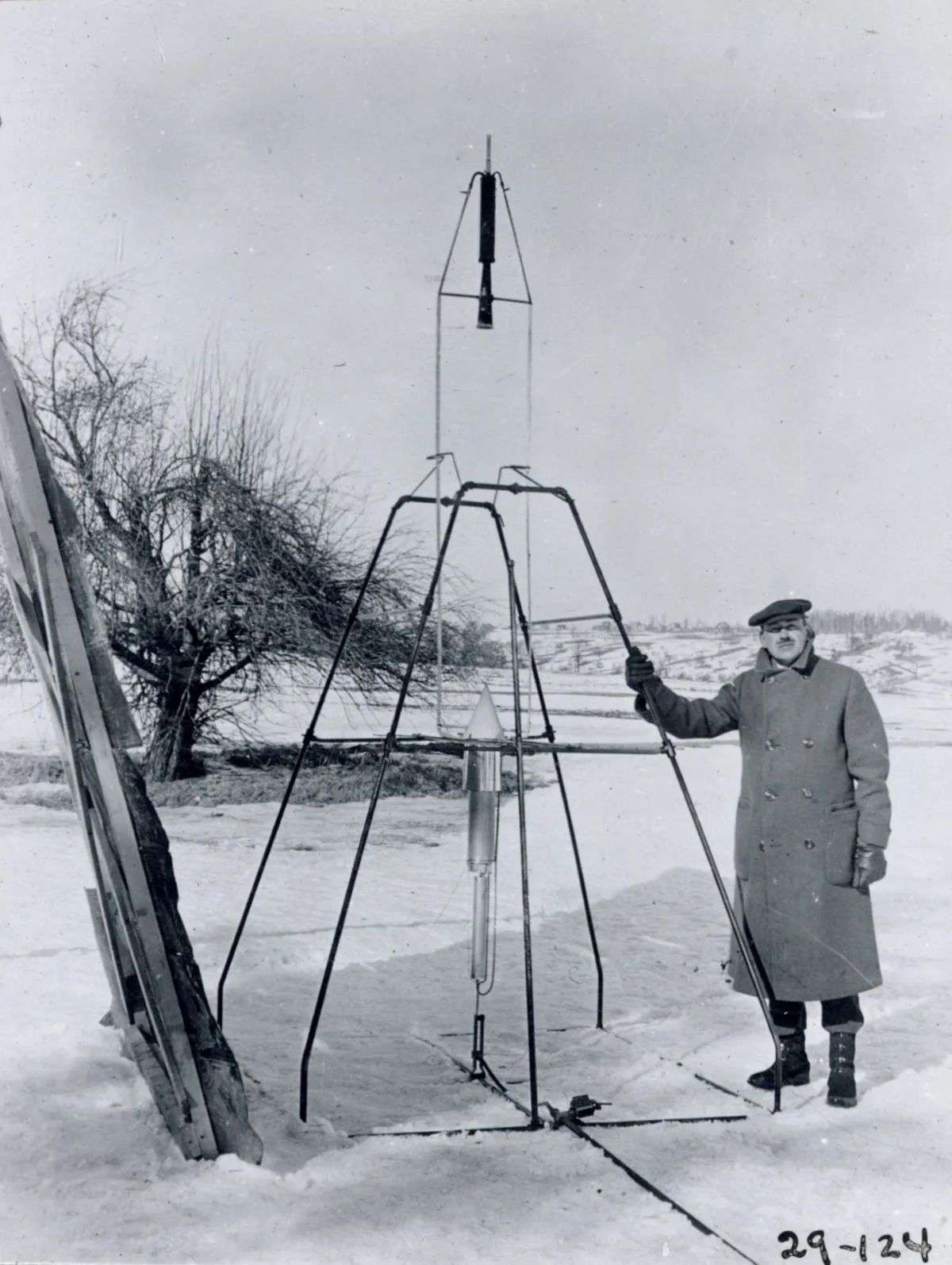 On March 16, 1926, physicist and inventor Dr. Robert H. Goddard achieved a small but significant success when he launched a liquid-fueled rocket for the first time. His rocket, fueled by liquid oxygen and gasoline, was tested at his Aunt Effie’s farm in Auburn, Massachusetts.