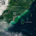 In Pacific Northwest imagery from the NASA-ISRO Synthetic Aperture Radar mission, some areas are dotted in magenta due to radar signals strongly reflecting off flat surfaces like roads and buildings, combined with the orientation of those surfaces relative to the satellite’s ground track. The yellow can be produced by a range of different factors, including land cover, moisture, and surface geometry. Yellow-green in the imagery generally indicates vegetation, such as the forests and wetlands covering the region.