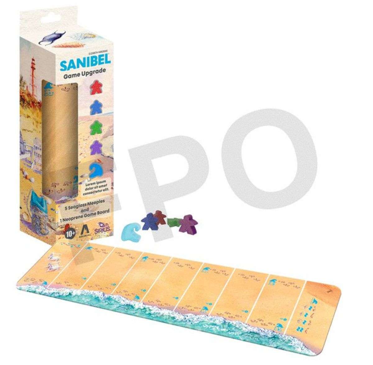 The official upgrade kit enhances the seashell-collecting experience in Sanibel with premium components designed to elevate gameplay. It includes a high-quality playmat that transforms the game board into a scenic beach landscape, along with a set of custom, color-coded sea glass-inspired player tokens that add distinction and personality to each play session.