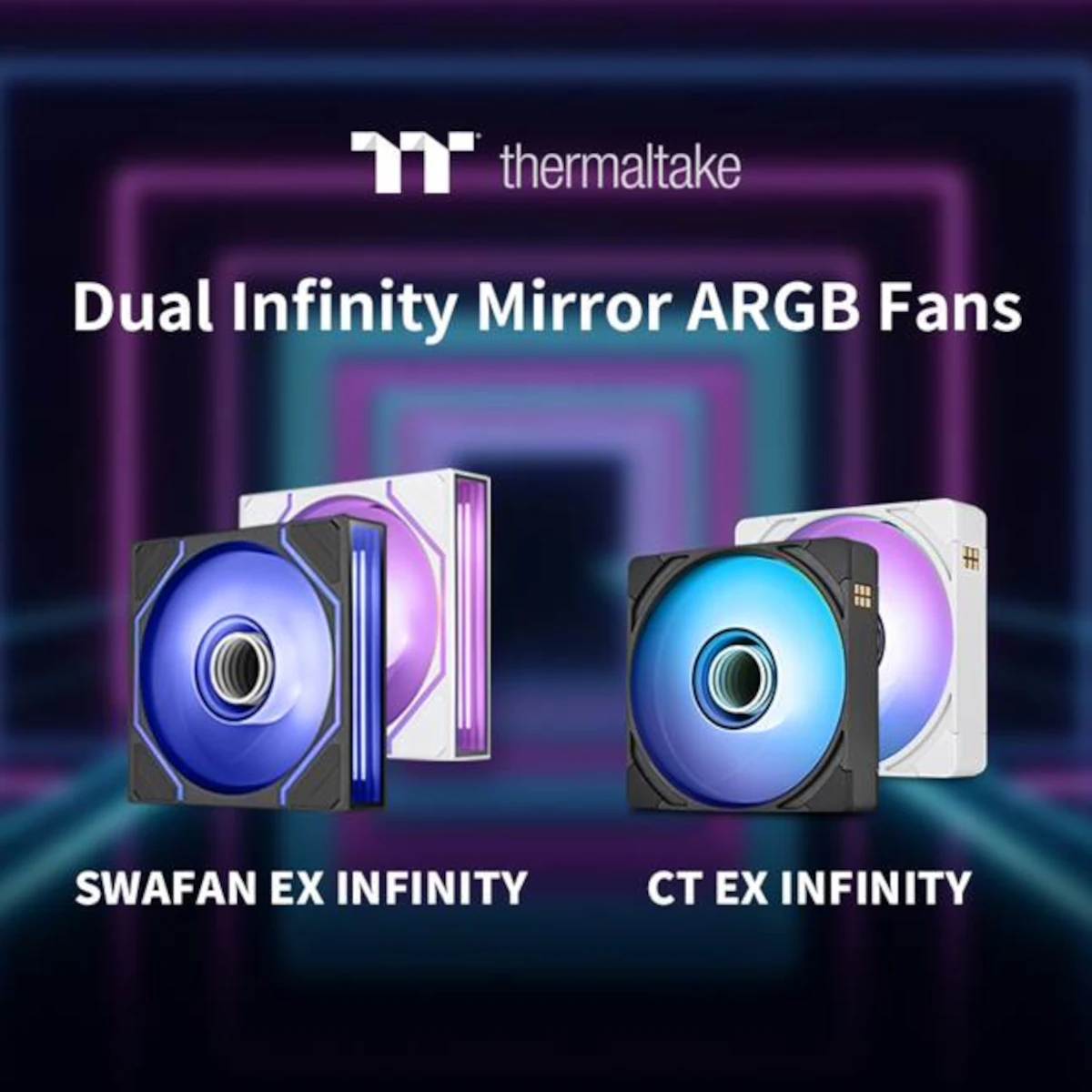 Thermaltake, a leading PC DIY brand for premium hardware solutions, proudly introduces the SWAFAN EX INFINITY ARGB Sync PC Cooling Fan and CT EX INFINITY ARGB Sync PC Cooling Fan, two new additions to its ARGB fan lineup designed to elevate both system cooling and visual presentation. Featuring Thermaltake’s Dual Infinity Mirror Lighting, the fans create layered reflections that add striking depth and illumination to modern PC builds.