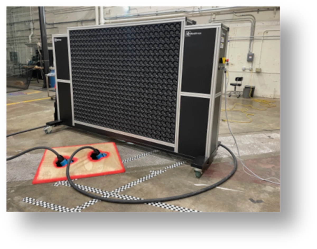 Windshaper fan array for dynamic low-speed and hovering flight research at NASA Ames Research Center.