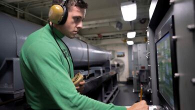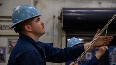 Saxonburg native moves equipment in the jet shop aboard USS Theodore Roosevelt