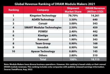Kingston Technology Remains Top DRAM Module Supplier for 2021