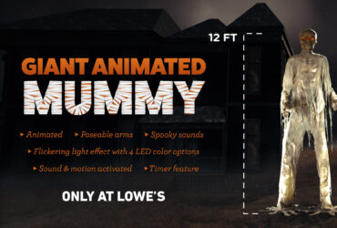 12-FT MUMMY AT LOWE’S IS ANIMATED WITH 4 SELECTABLE LED COLORS